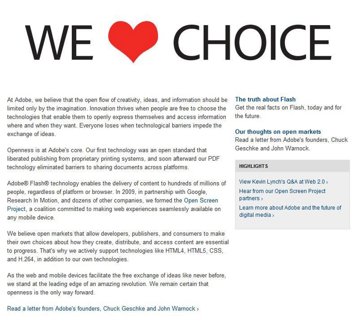 En la lucha protagonizada por Apple y Adobe, la decisión de las grandes productoras de no ceder a las demandas de Apple ha caído como una bendición en Adobe, que en las últimas semanas había recibido duras críticas hacía Flash, su reproductor, por parte de Steve Jobs, CEO de Apple.