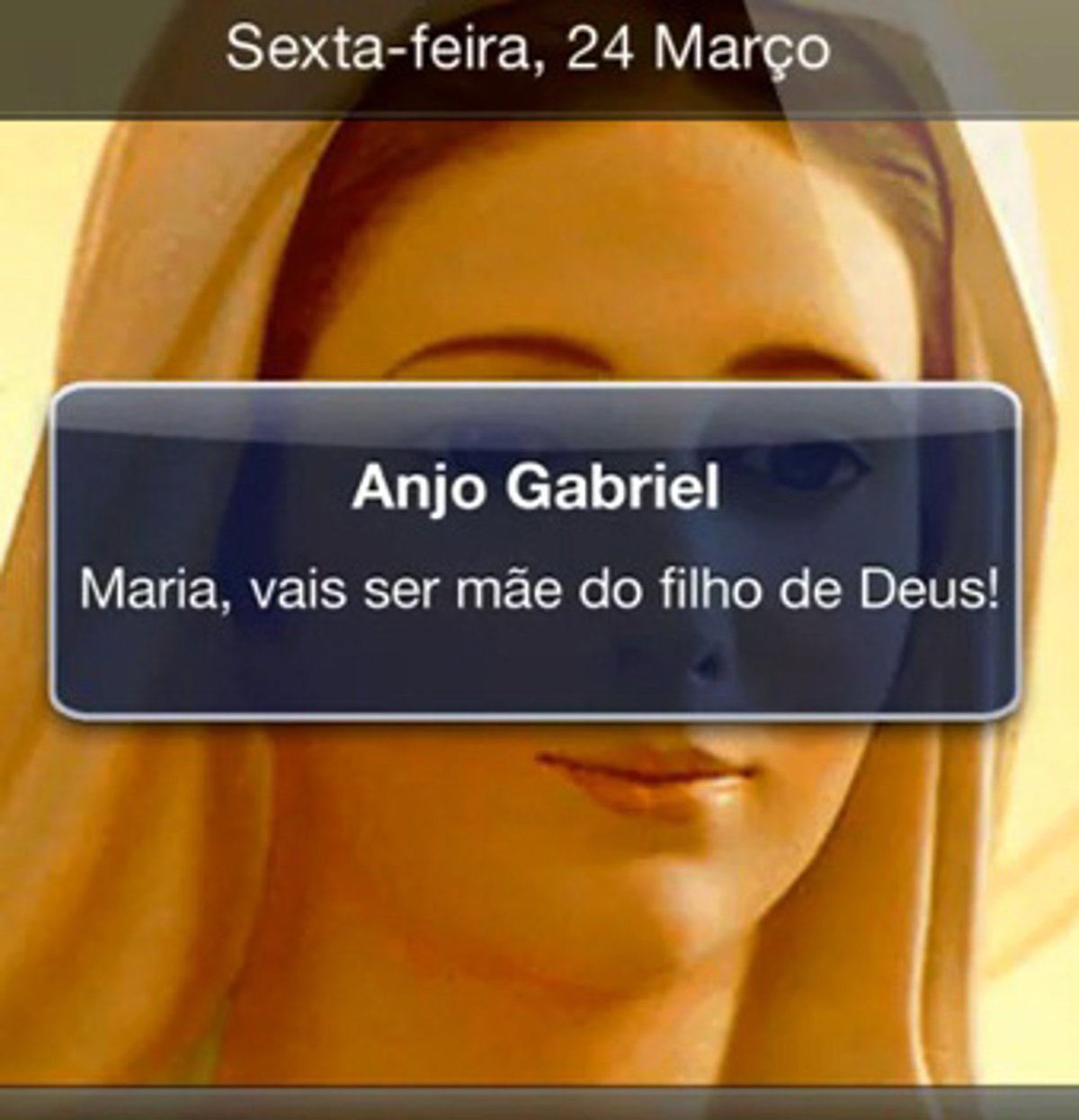 Tampoco faltan los 'check-ins' en FourSquare, los e-mails, las compras online o los itinerarios en Google Maps. Incluso el Ángel Gabriel informa a la Virgen María de que va a ser la madre del hijo de Dios por SMS. Sencillamente genial. Lamentablemente está en portugués, aunque se entiende.