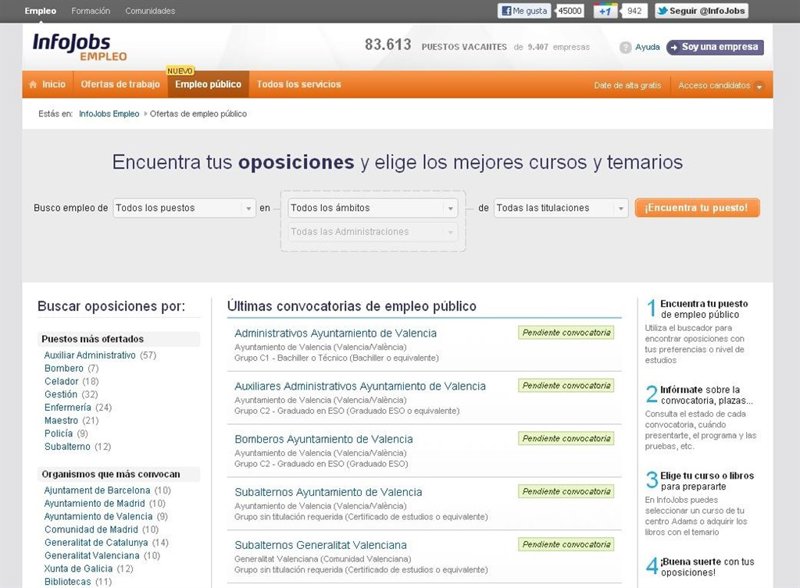 Además de informar sobre las plazas vacantes en la Administración, InfoJobs ofrecerá también cursos y temarios de formación y preparación para cada oposición.