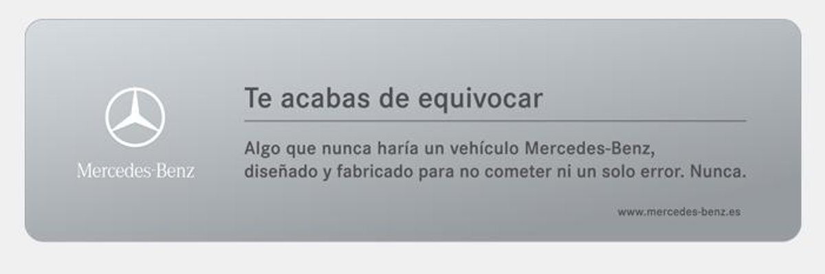 Esta idea, basada en una direcciones erróneas, consiste en que cuando el usuario se equivoca al escribir la URL del diario 'www.elmundo.es' y pone 'www.ellmundo.es', aparece una web de Mercedes-Benz en la que se puede leer el siguiente aviso: "Te acabas de equivocar. Algo que nunca haría un vehículo Mercedes-Benz, diseñado y fabricado para no cometer ni un solo error. Nunca".