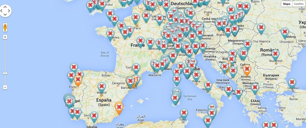 Si entramos en el sitio vemos un mapa interactivo del mundo con numerosos puntos destacados que nos indican que hay vídeos grabados por drones.