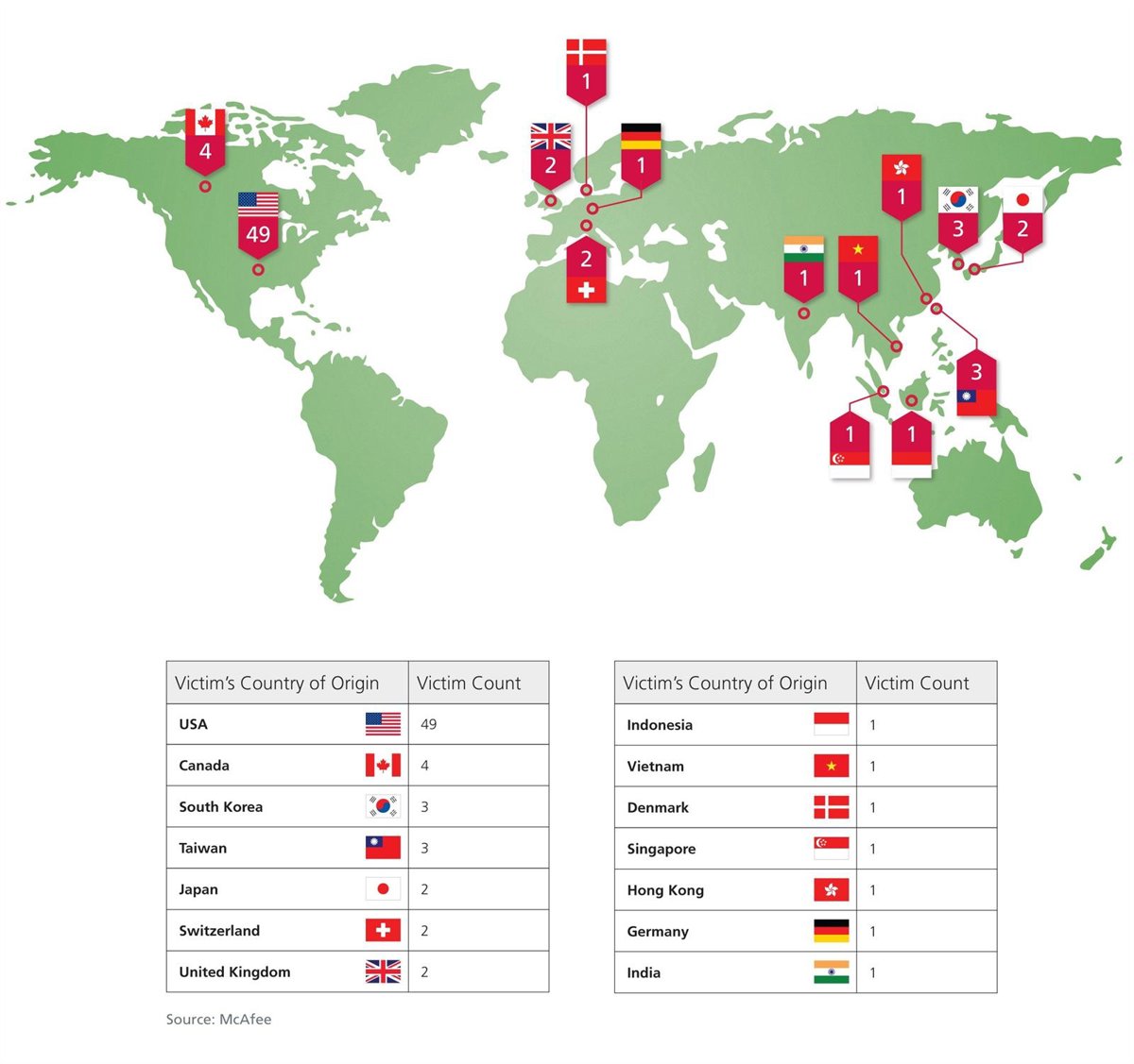 En cuanto al autor de estos ataques, McAfee no ha querido apuntar a un culpable en concreto, pero asegura que se trata de un único actor/grupo ubicado en un país no revelado.