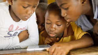 Niños ghaneses de zonas rurales utilizan una tablet como parte de un programa de Bluetown en el este del país. - BLUETOWN - Archivo