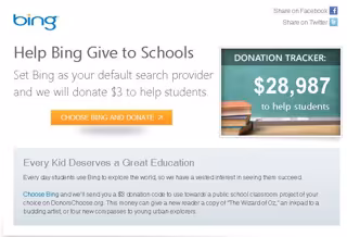 En colaboración con la web DonorsChoose.org, dedicada a la recaudación de fondos para proyectos educativos, Microsoft propone así a los usuarios cambiar a Bing "con un propósito".
