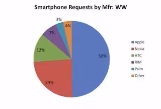 Symbian, el principal SO de Nokia, alcanza el 25% de cuota; le sigue Android, el SO de código libre, con un 11%; RIM OS, utilizado por Blackberry, con un 7%; Windows Mobile, con un 3% y los recién salidos Palm OS y WebOS con 2% y un 1% respectivamente.