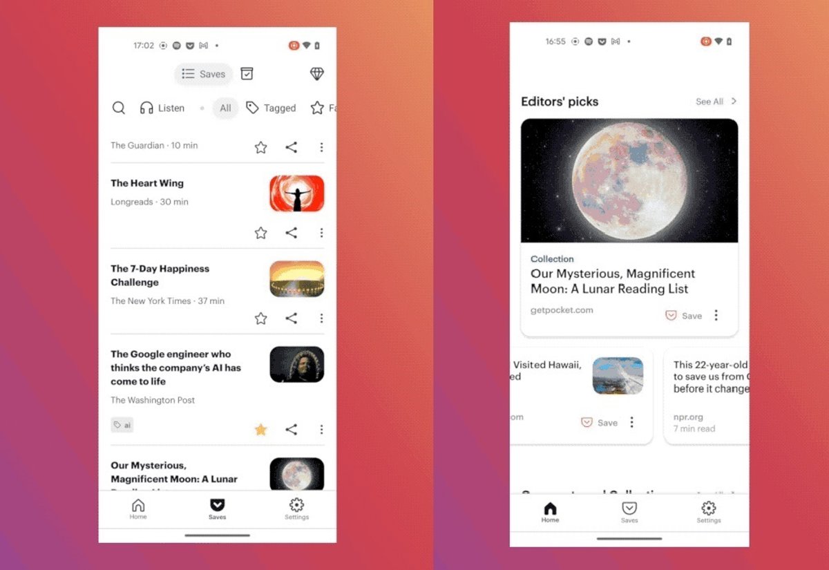 Interfaz de Mozilla Pocket para Android - MOZILLA