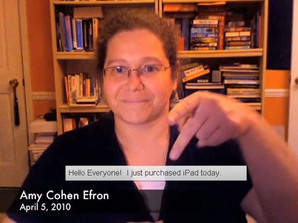 Amy Cohen Efron, una ciudadana estadounidense aquejada de sordera ha comenzado una campaña a través de un vídeo grabado por ella misma en la que advierte a Apple y Google de la incompatibilidad existente entre el nuevo dispositivo de Apple, iPad, y la opción de subtítulos automáticos incorporada recientemente por Google en su servicio de 'video-streaming', YouTube.