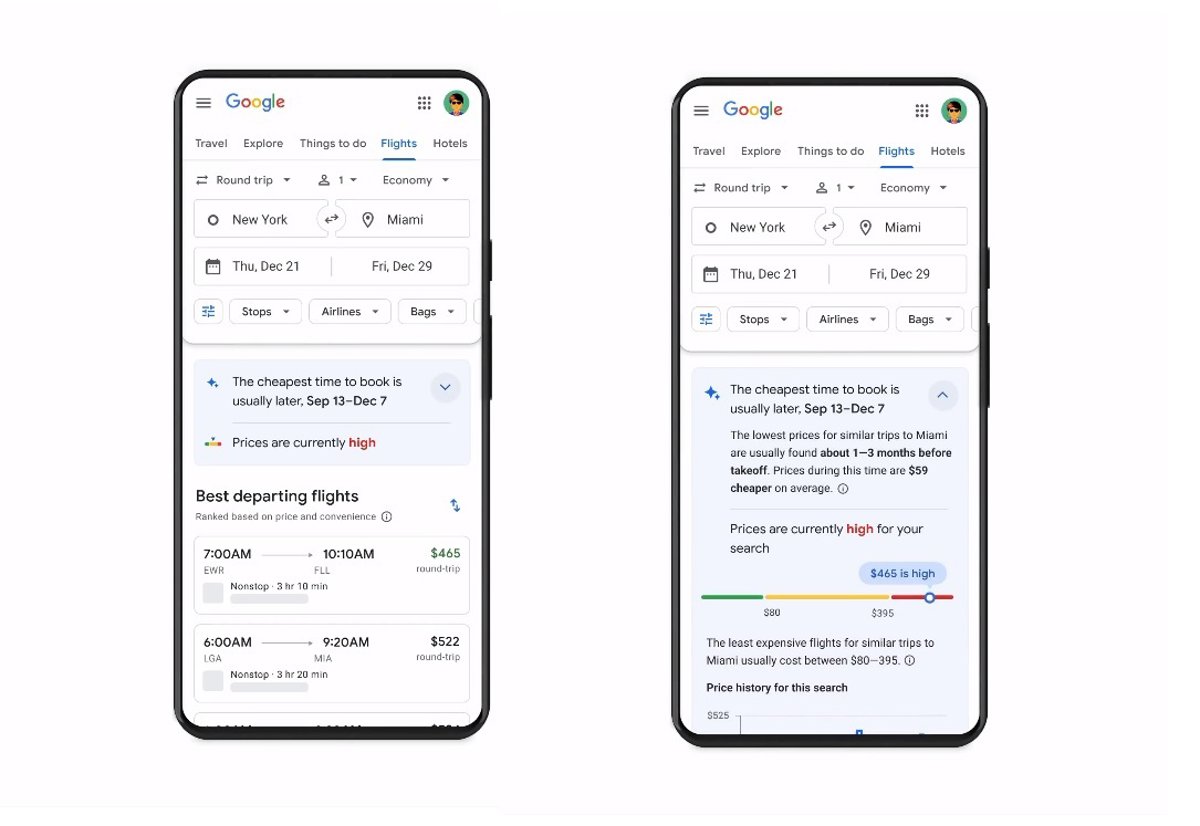 Google ha recordado que su aplicación ya muestra si los precios que presenta son bajos, normales o altos en comparación con los promedios anteriores para la misma ruta. Sin embargo, con estas notificaciones espera ofrecer información actualizada para facilitar la elección del viaje según el destino.