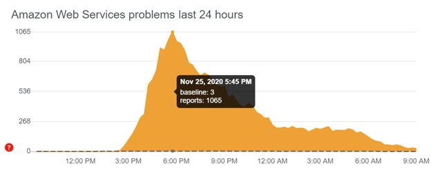 Los problemas con AWS se empezaron a detectarse hacia las 14.30 horas de este miércoles (hora en España), con un pico máximo de incidencia hacia las 17.40 horas, como recoge el portal Down Detector. Aunque en descenso, sus efectos se han mantenido desde entonces.