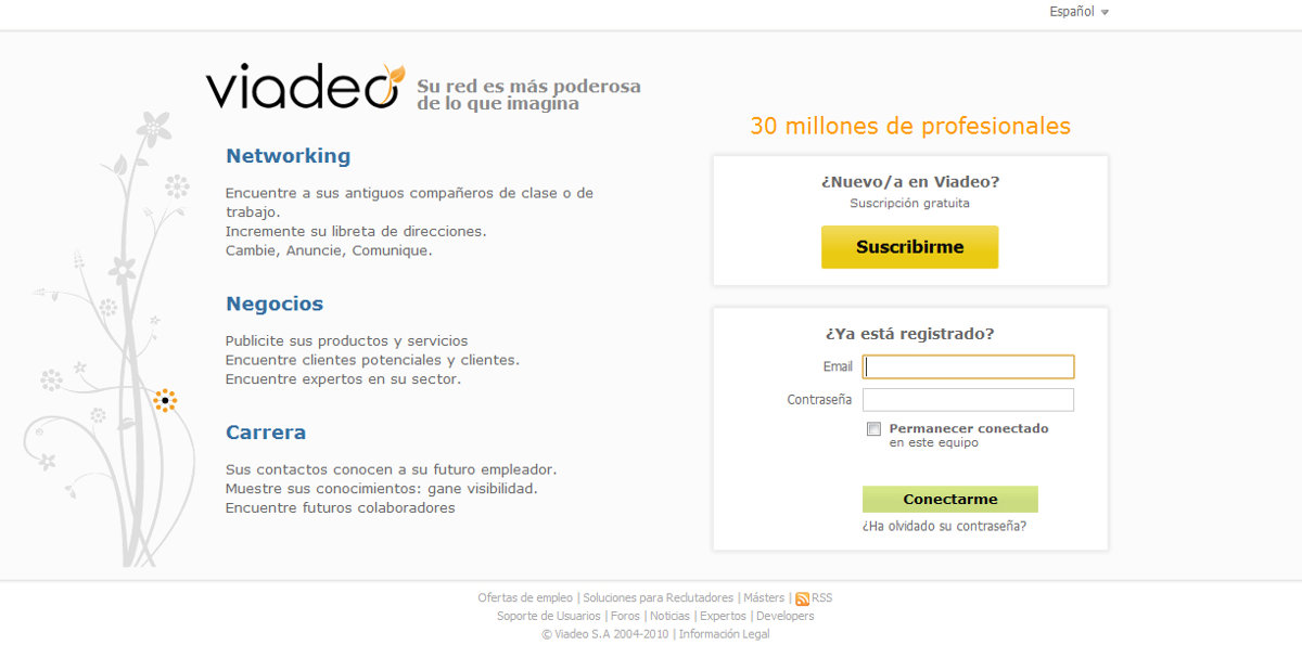 La red profesional Viadeo ha superado los 30 millones de usuarios, a la vez que sus visitas mensuales asciende a 200 millones en todo el mundo. Tiene presencia en 226 países, en cinco continentes, cubriendo 322 sectores.