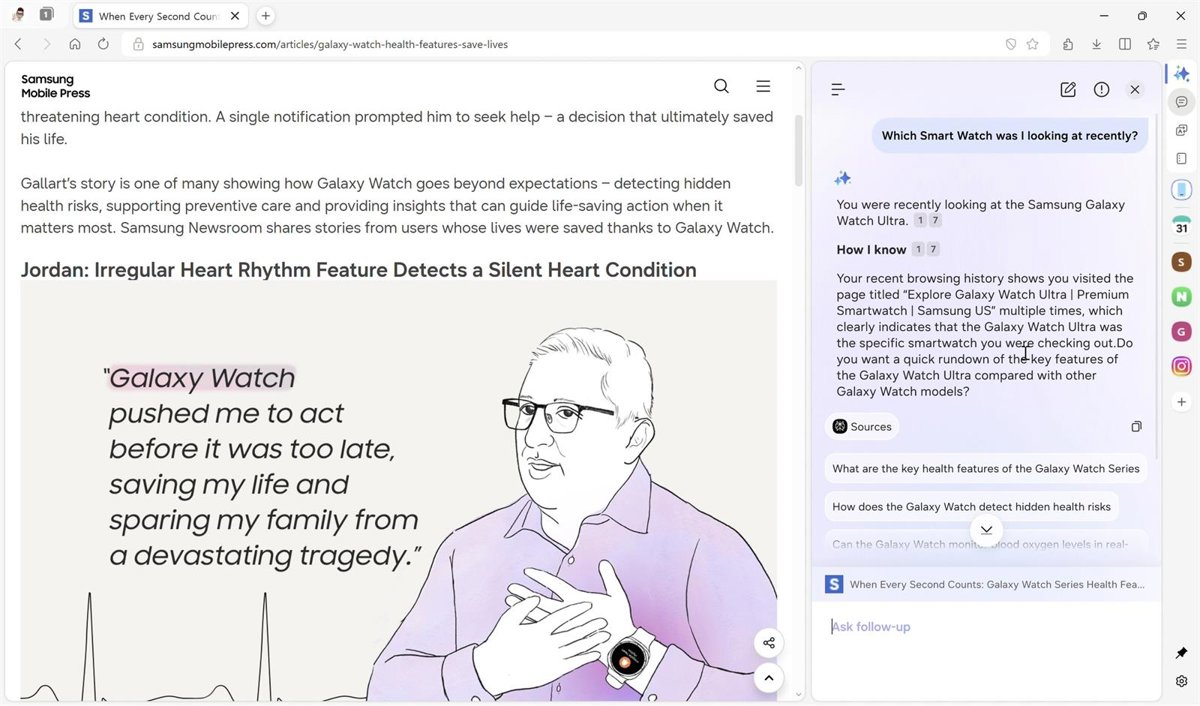 Además, la compañía ha subrayado que Samsung Internet comprende también el contenido de los vídeos, por lo que los usuarios pueden pedirle que comience la reproducción en una parte específica. Por ejemplo, si un usuario está viendo la presentación del Samsung Galaxy S26 Ultra, puede pedirle que comience la reproducción en la parte que habla sobre la privacidad de pantalla.