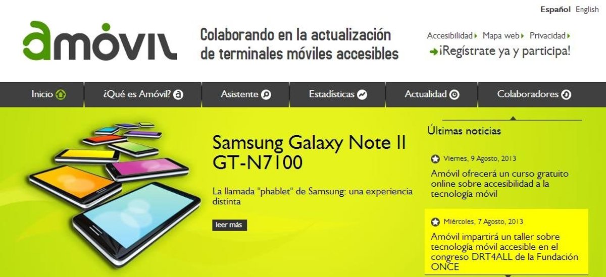 'Amóvil' --'www.amovil.es'-- es un sitio web interactivo con información sobre aplicaciones móviles que cumplan con los requisitos de accesibilidad universal y diseño para todos. Además, publica noticias e informaciones sobre accesibilidad a las TIC y promueve la participación activa tanto de los usuarios como de los expertos en accesibilidad, así como fabricantes y empresas relacionadas con la tecnología móvil.