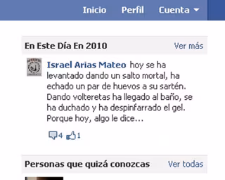 De esta forma, si Facebook te alerta de que "Menganito ha comentado tu estado" y acudes a comprobarlo, no dejes de echar un vistazo a la parte derecha de la página pues, con nostálgica sorpresa podrás recordar qué escribías exactamente hace un año en tu estado de la red social más popular del mundo.