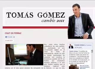 Gómez añade a su presencia en Internet un blog ('http://www.tomasgomez.org/wordpress/') en el que se puede leer el antetítulo 'Cambio 2011', si bien este espacio no es actualizado desde el pasado mes de abril. 'Flickr' o un canal de Youtube son otros de los canales del candidato en Internet, aunque éstos pertenecen al Partido Socialista Madrileño.