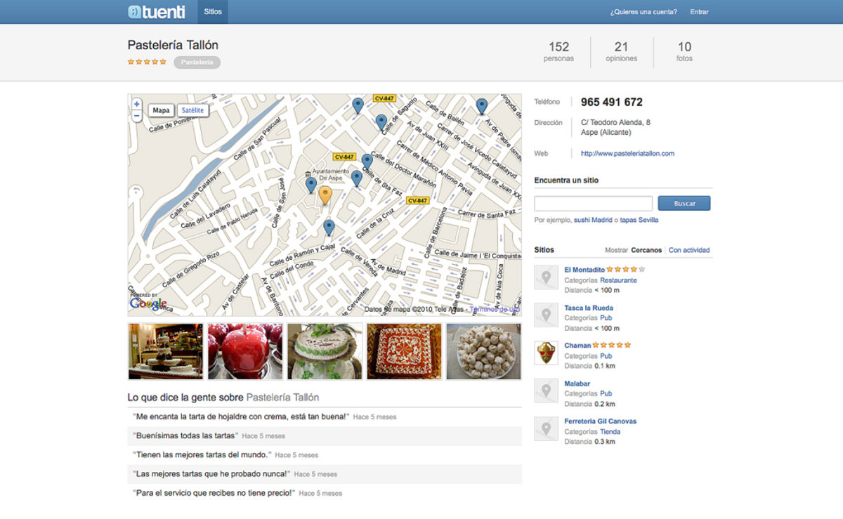 Tuenti ofrece nuevas herramientas a la página de cada sitio: información completa, mapas dinámicos, sitios próximos, galerías de fotos, opiniones e índices de popularidad de cada servicio.