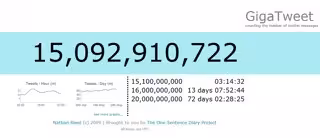 Según el contador GigaTweet, la red de microblogging ha superado la cifra de 15.000 millones de 'tweets' publicados. El mensaje que rompió esta barrera fue escrito por el usuario @EGRK.