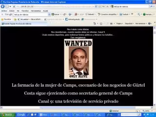 La página web del PP de la provincia de Valencia ha sufrido el ataque de un 'hacker' --krOno-- que pide la dimisión del presidente del PPCV y de la Generalitat, Francisco Camps, tras su imputación en el 'caso Gürtel'. Además, lo presenta con un cartel en el que se lee: 'wanted only alive', que es el que utilizó la portavoz de Compromís, Mónica Oltra, durante un pleno de las Corts.