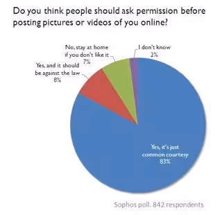 El portal Naked Security ha encuestado a 842 usuarios para conocer su opinión sobre este problema. Los usuarios han contestado a la pregunta: "¿Crees que la gente debe pedir permiso antes de publicar fotos o videos de usted en línea?". Una inmensa mayoría, un 91% por ciento ha respondido que sí. El 83 por ciento de los usuarios ha comentado que pedir permiso antes de subir la fotografía debería ser una cortesía habitual entre los usuarios.