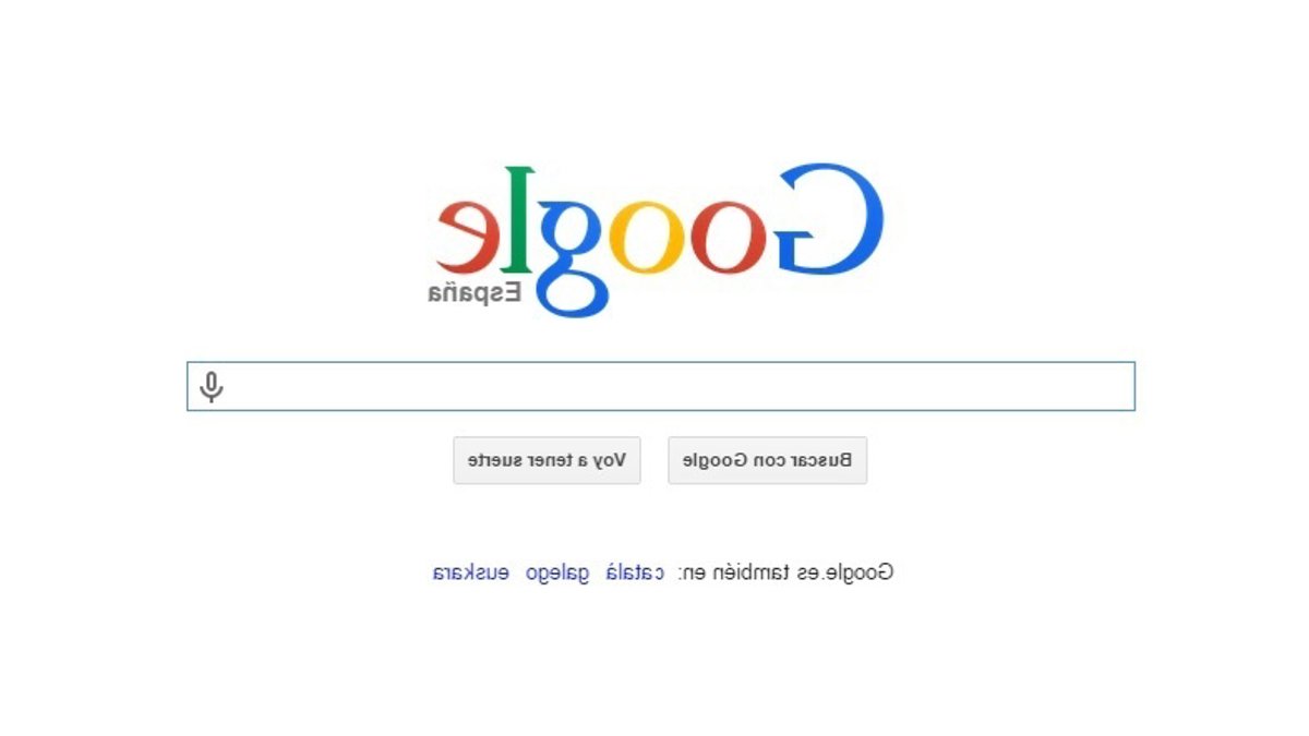 Si te aburre el aspecto tradicional del buscador de Google será mejor que eches un vistazo a esta versión que nos ha dejado sorprendidos. En ella vemos la interfaz de la herramienta al revés, mostrando incluso los resultados de forma inversa.