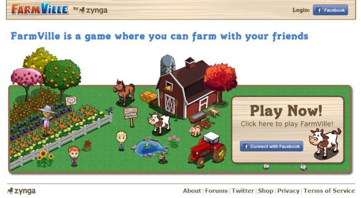 El FarmVille de Zynga, el más conocido y con más de 70 millones de usuarios activos hasta ahora, permite a los jugadores tener una granja en la que pueden cultivar y cuidar animales, entre otras actividades.