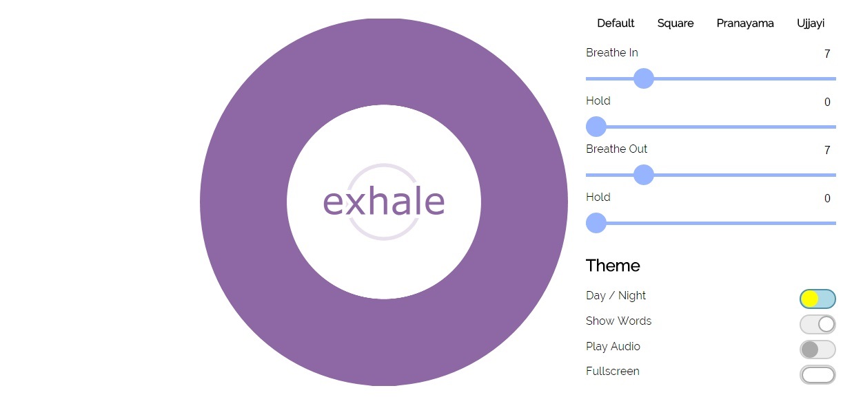Como, a veces, ‘menos es más’, si visitamos este sitio web nos vamos a encontrar un diseño muy minimalista. Un círculo en la parte central con, únicamente, dos indicaciones: inhalar y exhalar. Sencillez y efectividad elevada a la máxima potencia.