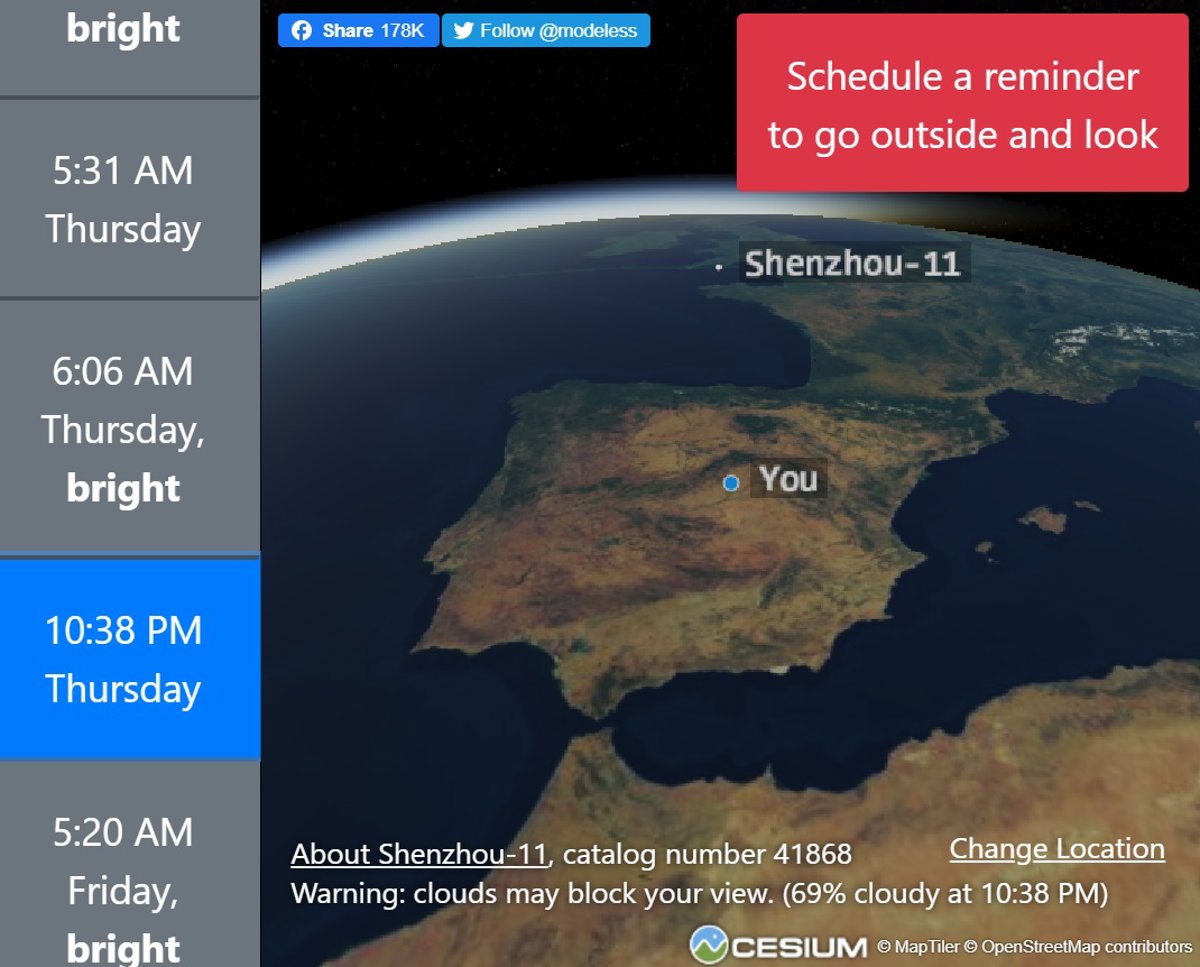 La web permite crear recordatorios para que avise de aquellos satélites que no nos queramos perder, y que podamos prepararnos para salir al exterior y verlos a simple vista, sin necesidad de telescopio, como su creador indica.