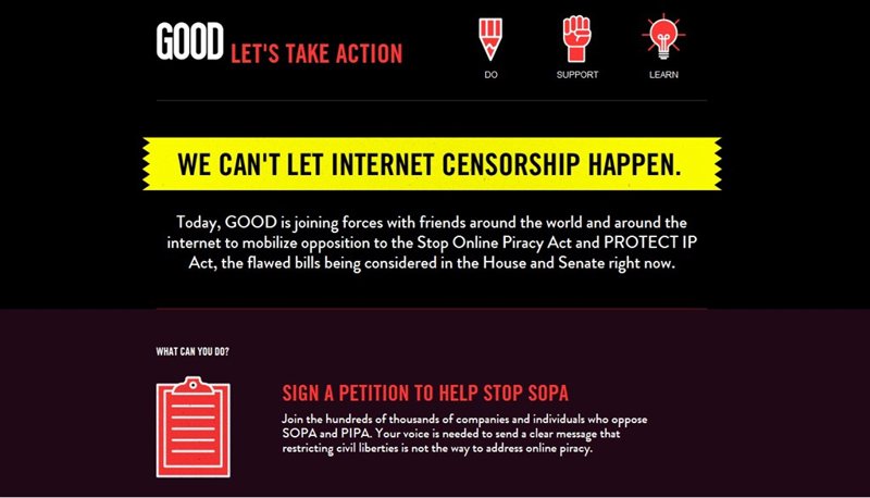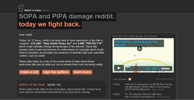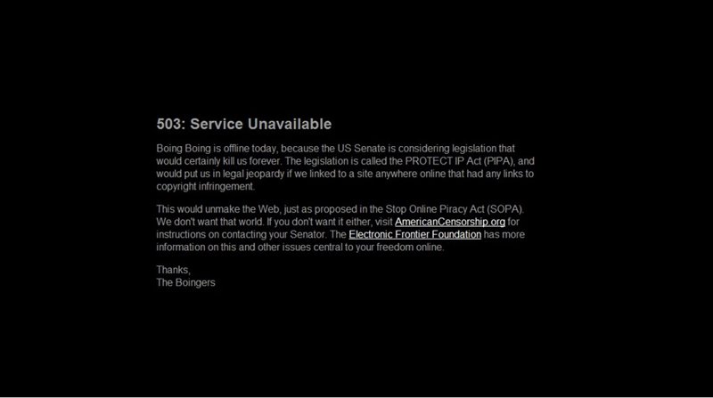 Muchas de estas páginas web han decidido protestar de forma más enérgica aún que mediante cartas o firmas, como han hecho algunas. De esta forma, este miércoles han criticado esta legislación mediante un "apagón" que ha consistido o en dejar inactivos sus servicios o en vestirlos de negro; o en ambas cosas.