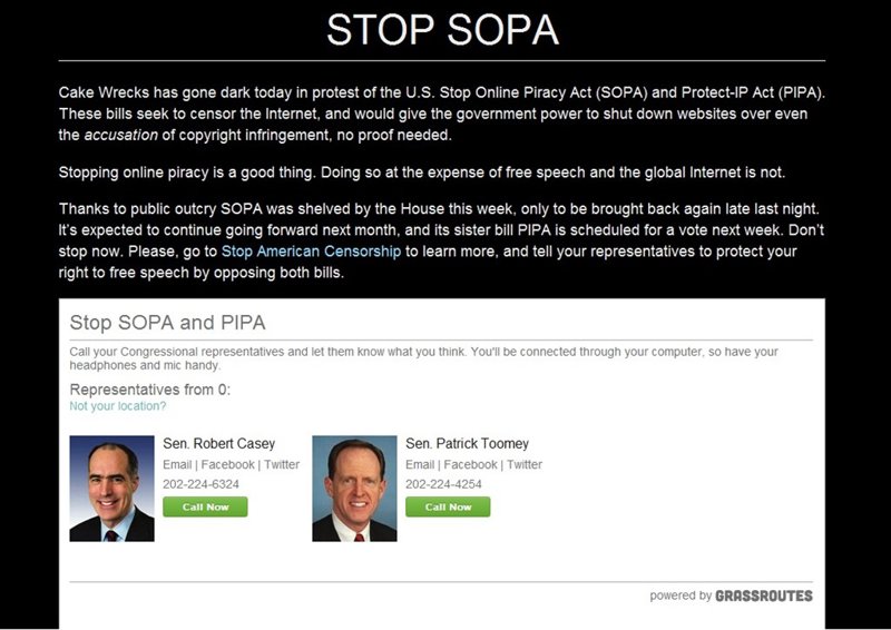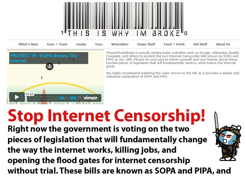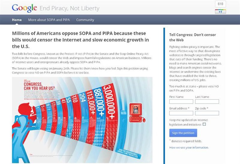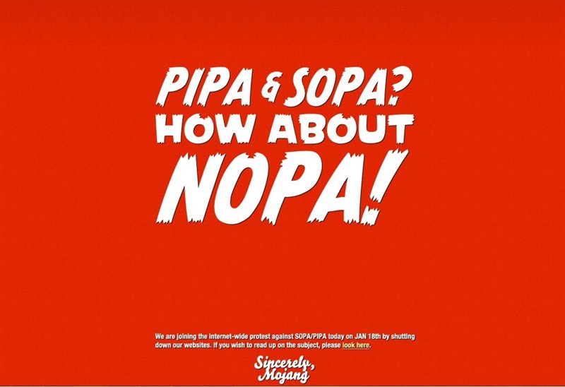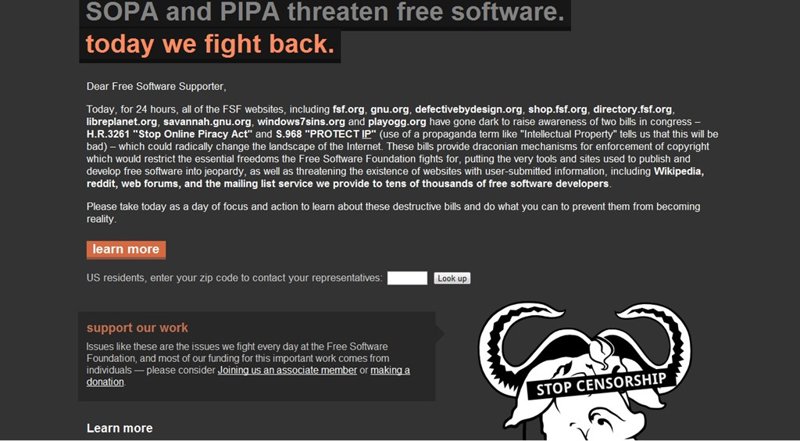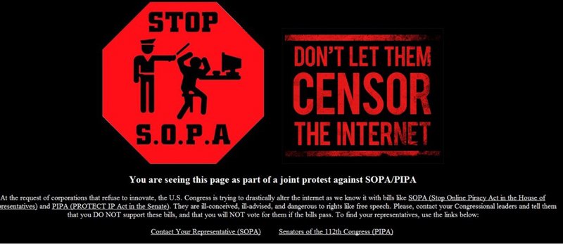 Decenas de páginas web de peso se han unido este miércoles 18 de enero de 2012 para protestar contra las leyes antipiratería SOPA y PIPA en las que trabaja Estados Unidos.