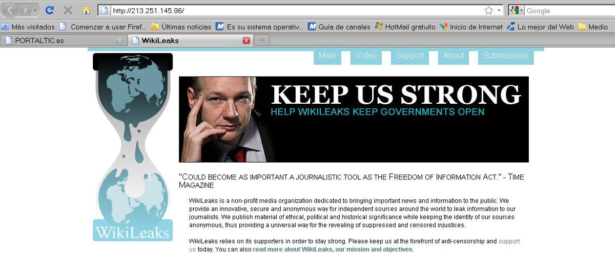 La única dirección actual que conserva Wikileaks tiene dominio suizo ,www.wikileaks.ch, pero remite directamente a una dirección numérica claramente visible, http://213.251.145.96. Con esta maniobra Wikileaks ha conseguido volver a tener su página operativa.