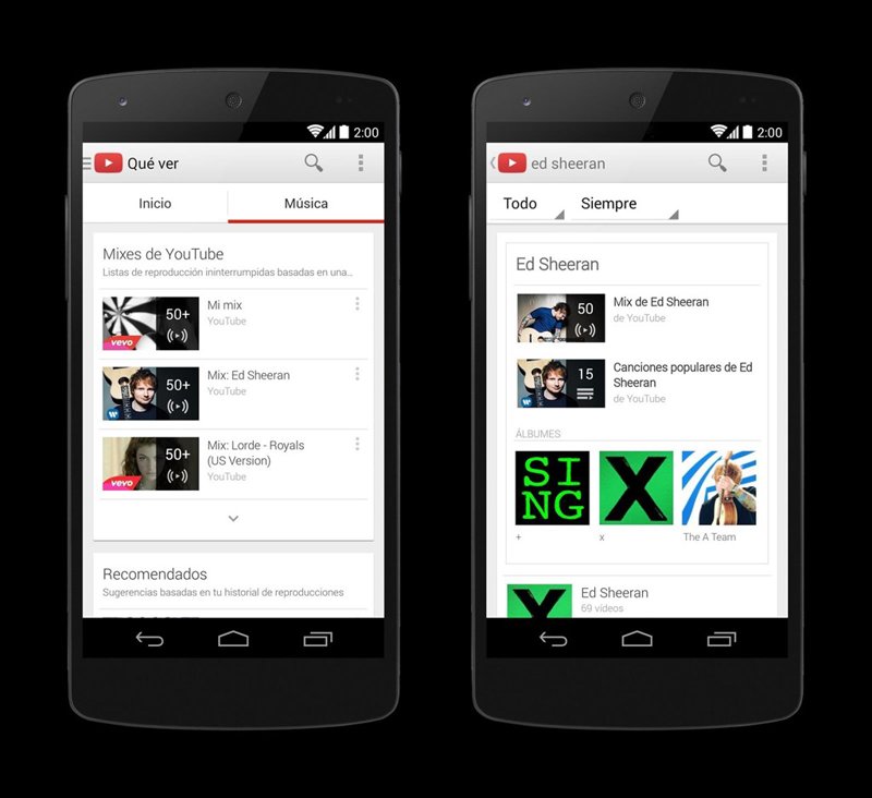 Sistemas de suscripción aparte, la plataforma de vídeos también ha incorporado novedades para todos sus usuarios con respecto a la reproducción de música gracias a la integración de la pestaña "Música" en la 'home' de YouTube, tanto en su versión web como en las aplicaciones para Android e iOS. En los próximos días, será posible escuchar los álbumes enteros de los artistas sin necesidad de andar buscando una lista de reproducción que incluya todos los 'tracks' o sin tener que buscarlas una a una.