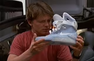 La compañía de deporte no desaprovechó este conocidísimo 'product placement'. Ya lanzó un modelo parecido al que lucía el personaje Michael J. Fox en la película en 2011, las Nike Mag, pero su cierre no era automático. Incluso se emitió un simpático anuncio en el que aparecía el doctor Emet Brown y criticaba que estas zapatillas no tuvieran "robocordones" (power laces, en inglés). En este punto, un empleado de la firma replicaba que eso no ocurriría hasta 2015.