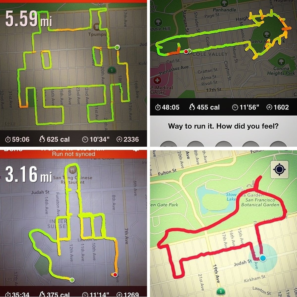 Una usuaria de Nike+ Running, la 'app' de la marca de ropa deportiva que sirve para realizar un seguimiento de las carreras, ha encontrado un nuevo uso: realizar dibujos con el trayecto que sigue en cada uno de sus entrenamientos.