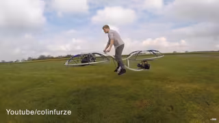 El famoso 'youtuber' Colin Furze ha creado una moto voladora totalmente funcional usando sus manos, sus herramientas y un par de ventiladores gigantes unidos por una pieza de metal que permite a la persona montar en ella y desplazarse.