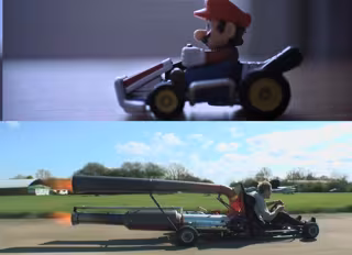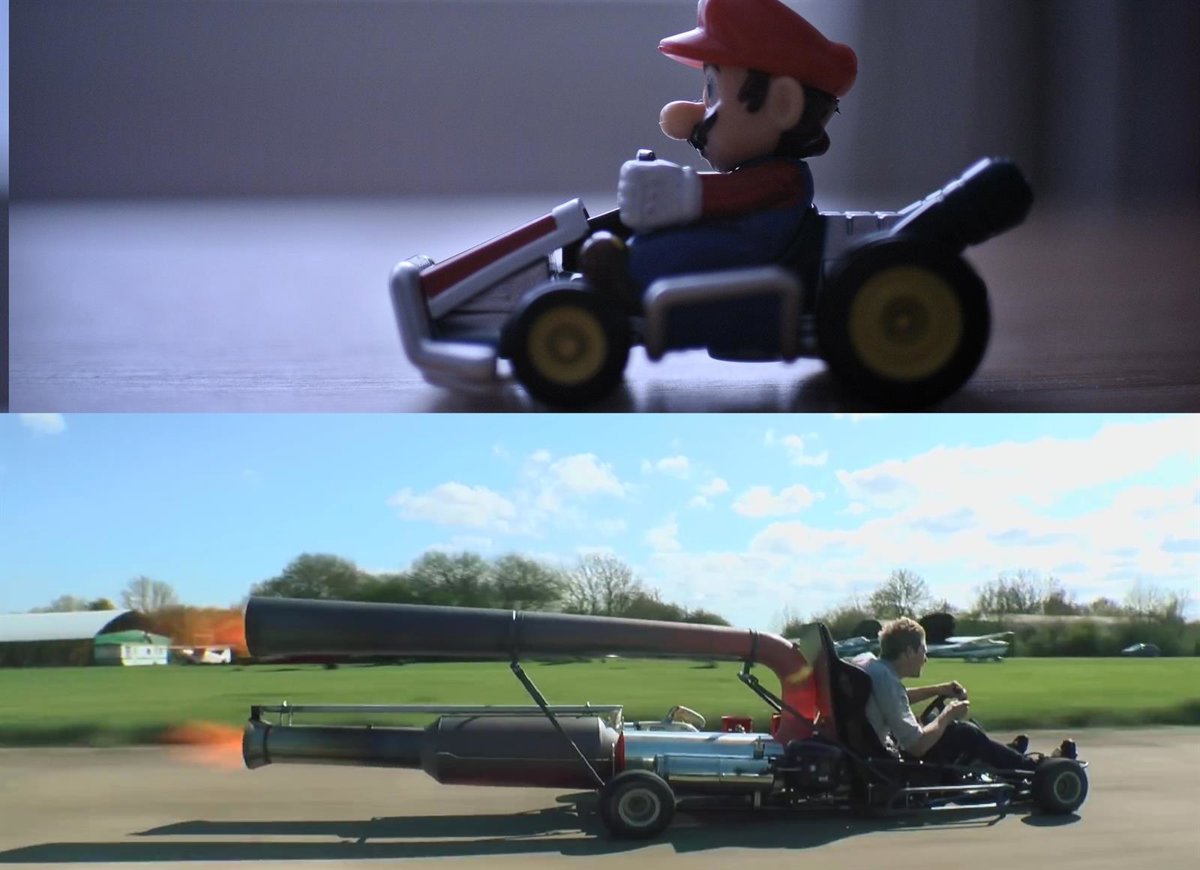 Colinfurze, el usuario de Youtube detrás de grandes obras de ingeniería frikis como "Cómo hacer una garras de Lobezno" o "Como fabrica una botas de Magneto" ha vuelto a las andadas. Esta vez se ha dedicado a añadir a un Kart un motor a reacción, teniendo como resultado un vehículo similar al que utiliza los personajes de Nintendo en MarioKart.