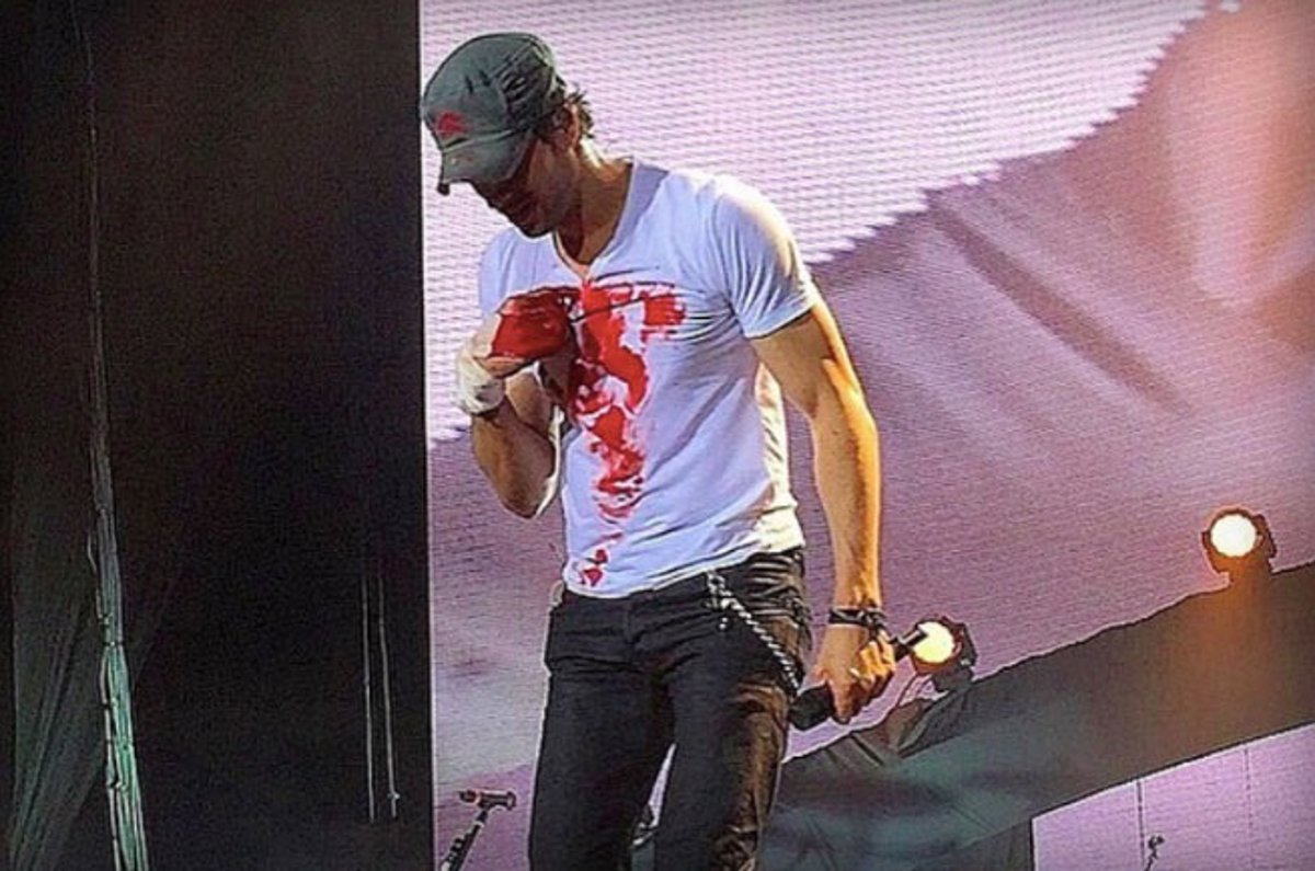 Enrique volvió a salir al escenario con un vendaje y continuó cantando con su misma camiseta blanca manchada de sangre, en la cual dibujó un corazón con la sangre de la mano, para deleite de las 12.000 personas que estaban en la plaza de toros de Playas.