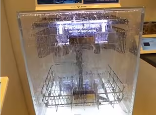 En este último grupo, Samsung muestra cómo funciona un lavavajillas Samsung por dentro gracias al producto colocado en la feria con las cubiertas transparentes. De esta manera, y según se puede comprobar en el vídeo, se ve como cada pieza realiza su función a la hora del lavado.