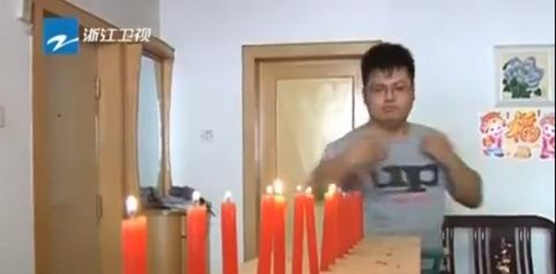 El movimiento de las manos se denomina Shaolin Sunshine Hand y Jia ha estado practicando nada menos que durante ocho años. Se trata de un movimiento seco, a modo de látigo, con las manos para mover el aire y que así se apaguen las velas.