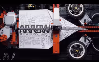 No es la primera obra que este artista crea a partir de piezas Lego pero, esta vez, Arthur se ha unido al equipo de Arrow Electronics y Elevation Digital Media para diseñar la máquina. Ellos construido la nueva maquinaria construida con piezas de Lego donde una hoja de papel inicia un recorrido como hoja y termina convirtiéndose en avión de papiroflexia listo para ser lanzado.