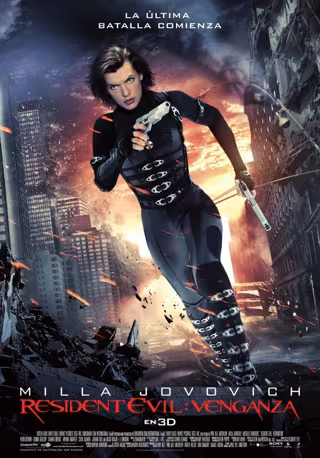 La protagonista indiscutible sigue siendo Mila Jovovich y en el nuevo cartel aparece corriendo entre disparos, fuego y edificios a medio derruir.