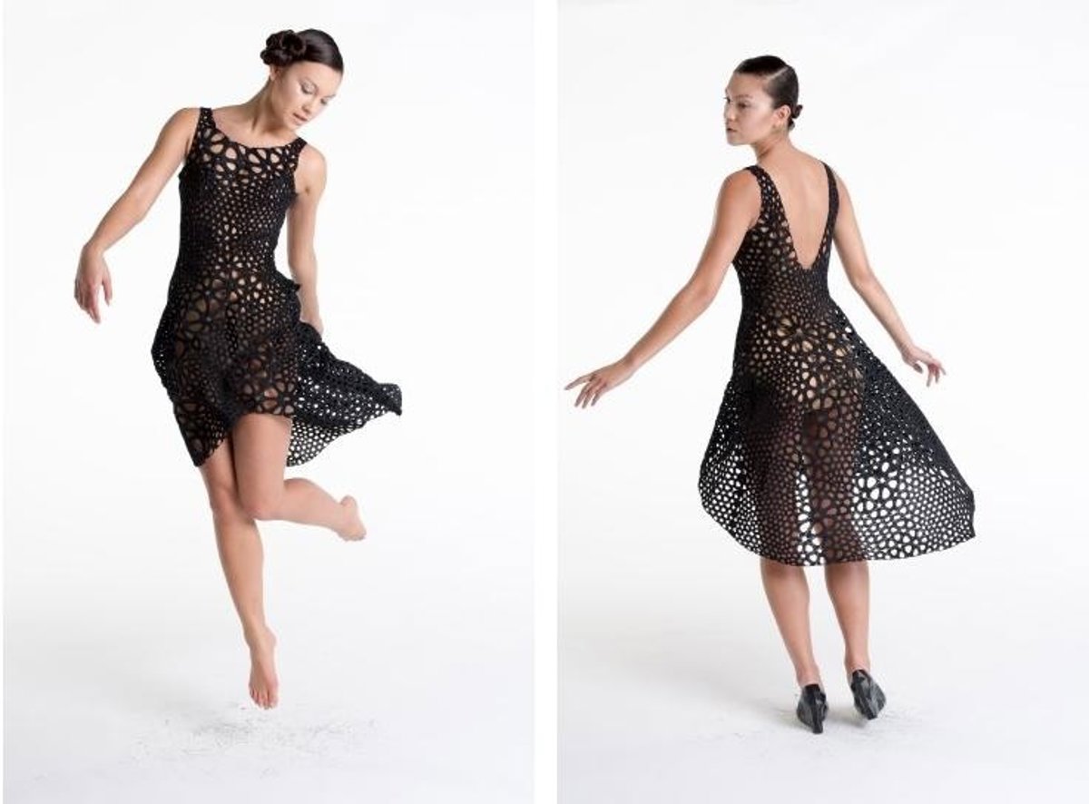 El vestido 3D se imprime a partir de una serie de escáneres realizados directamente sobre el cuerpo humano. El diseño se pefila mediante un 'software' que permite elegir la forma, el ajuste al cuerpo y el estampado que recrearán los distintos paneles ensamblados.