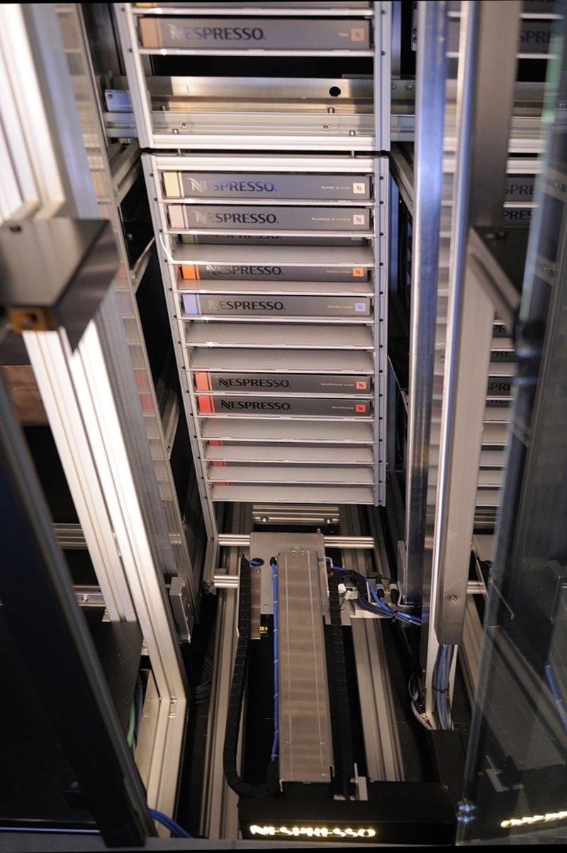 Nespresso Cube contiene hasta 25.000 cápsulas o 2.500 tubos de 10 cápsulas cada uno y puede procesar pedidos personalizados de 10 tubos diferentes en tan solo 20 segundos. La instalación es transparente y permite ver cómo unos modernos brazos robóticos preparan los pedidos. Los Socios del Club Nespresso pueden realizar su compra usando su tarjeta del Club Nespresso, y el resto de consumidores pueden hacerlo con su tarjeta de crédito.