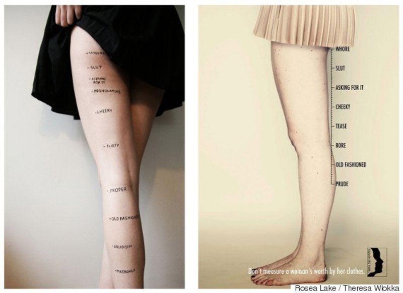 Gracias a unas imágenes elaboradas por una estudiante de publicidad de la Miami Ad School de Hamburgo llamada Theresa Wlokka, la organización suiza Terres des Femmes intenta concienciar de que la longitud de una falta, el tamaño de un escote o lo largo de unos tacones no son motivo para juzgar a ningún ser humano. Fue gracias a que el Facebook de la escuela compartió las tres fotos en cuestión lo que hizo que las imágenes hayan dado la vuelta al mundo.
