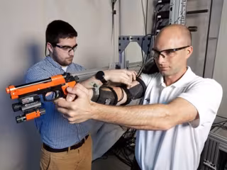Se trata de un exoesqueleto que estabiliza el movimiento del brazo al disparar con un arma de fuego y afina drásticamente la puntería del soldado, y por si fuera poco, aumenta su destreza como tirador mucho más rápido que otros métodos de entrenamiento.