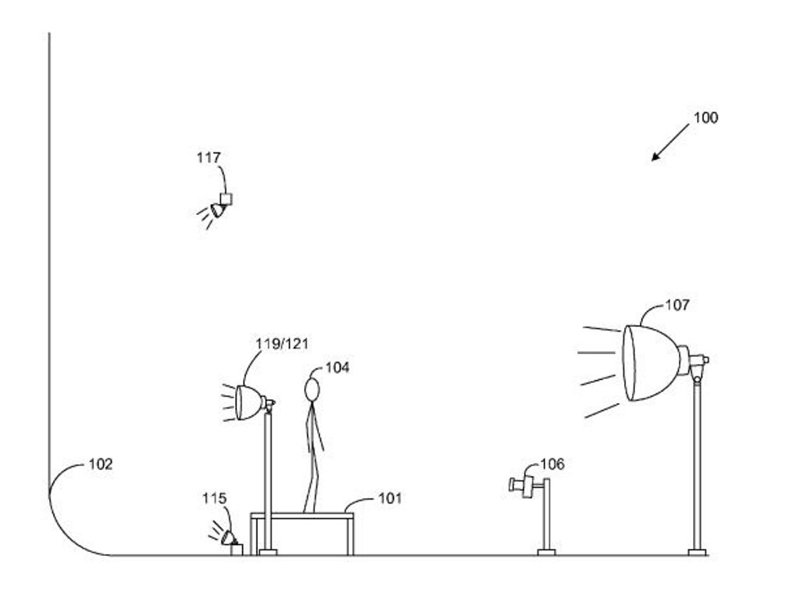 La Oficina de Patentes y Marcas de Estados Unidos (USPTO, por sus siglas en inglés) ha publicado una patente concedida a Amazon llamada 'Arreglo de Estudio' que prácticamente describe la acción y proceso de hacerse una foto en un estudio fotográfico con fondo blanco.