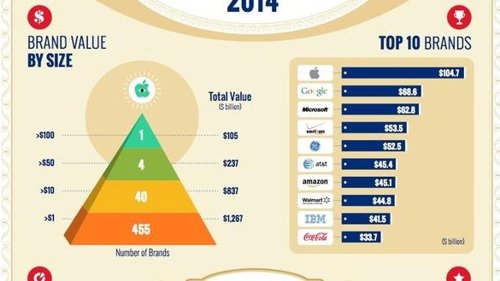 Así, la compañía de la manzana lidera la llamada lista de "Las marcas de los mil millones de dólares", por delante de Google, valorado en 68.600 millones de dólares o de Microsoft, con 62.800 millones, segunda y tercera en el ranking respectivamente. Es una clasificación que está dominada claramente por las empresas tecnológicas, que representan el 23% del total, según el informe. Cinco compañías del sector están entre las diez primeras.