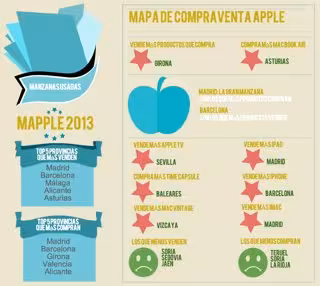 La española Manzanasusadas.com ha creado Mapple, un mapa que muestra cómo funciona la compraventa de productos Apple en España. La 'startup' ha demostrado así que los madrileños son los que más productos compran mientras que los barceloneses son los que más revenden.