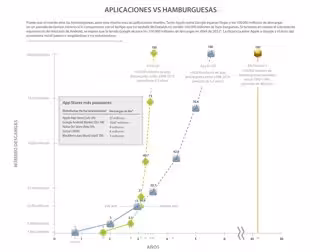 ¿Cuántas hamburguesas se pueden consumir al cabo de un solo día en los restaurantes McDonald's de todo el mundo? Pues eso no es nada en comparación con la cantidad de aplicaciones que puede vender Apple diariamente dentro de unos años al comparar su crecimiento con el de las hamburguesas más famosas del mundo.