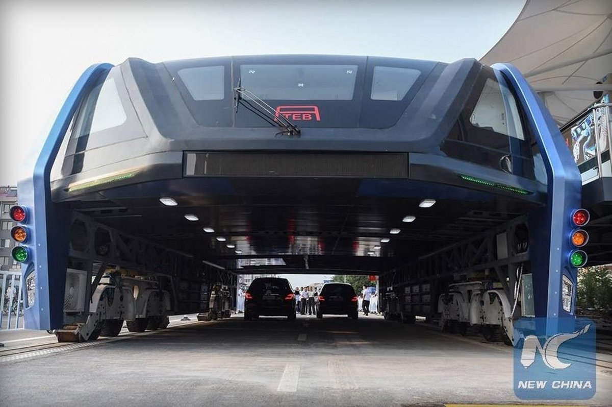 El autobús que circula por encima de los coches ya es una realidad