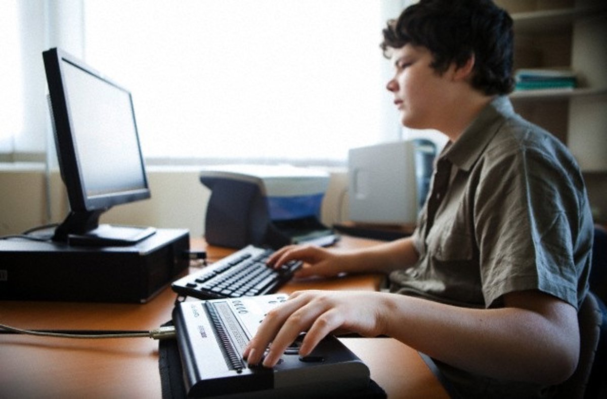 Joven ciego utilizando un ordenador. - FUNDACIÓN ADECCO - Archivo