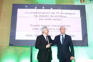 Por su parte, el ministro de Industria, Miguel Sebastián, que dio la orden para apagar Torrespaña (Madrid), Valencina de la Concepción (Sevilla) y Collserola (Barcelona) a las 13.20 horas, afirmó que la voluntad del Gobierno por mejorar tecnológicamente la televisión "no termina hoy". "Esto empieza hoy", subrayó Sebastián, quien señaló nuevos retos como la televisión interactiva, la Alta Definición o el dividendo digital.